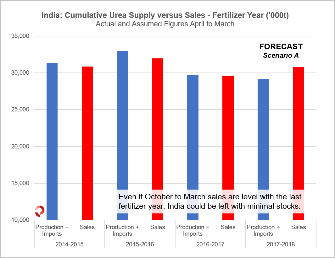 Sales figures for the coming months are clearly important, as well as domestic production rates. In October 2016 sales were hit by the demonetisation of high value currency notes. The current supply and demand balance indicates that further major inquiries for urea shipments through to year end would be necessary to guarantee a buffer stock.
