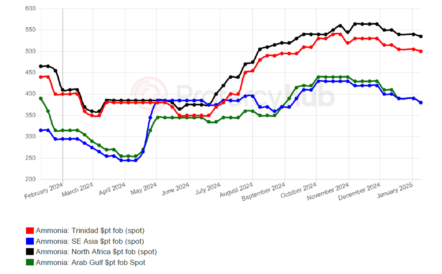 The international merchant ammonia market has commenced 2025 fundamentally long on a strong supply situation in key export hubs and seasonally weak demand from large industrial buyers in Northwest Europe and Northeast Asia.