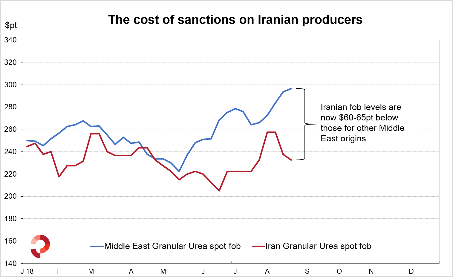 The latest sales of Iranian product highlight the impact of sanctions. While Iranian fob levels have fallen by more than $20pt since the MMTC tender, other Middle East suppliers have registered major price gains in the past two-three weeks. Indeed, latest sales of Middle East product reported by Profercy have been concluded at $295pt fob and above, over $30pt above netbacks from India under the last tender.