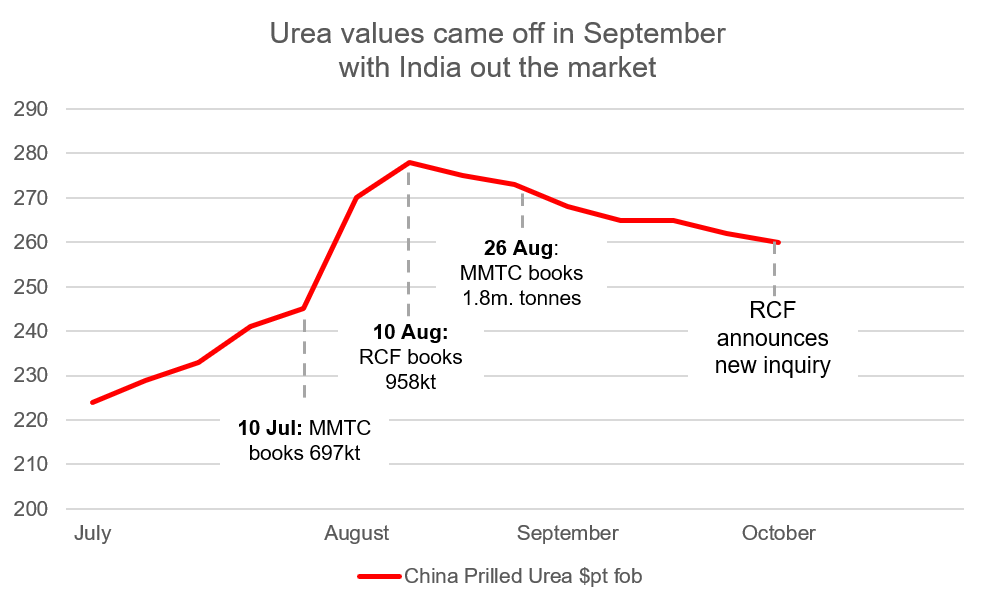 After more than a month’s wait, India’s return to the urea market was confirmed this week with state-purchasing agency RCF issuing a tender on 30 September.
