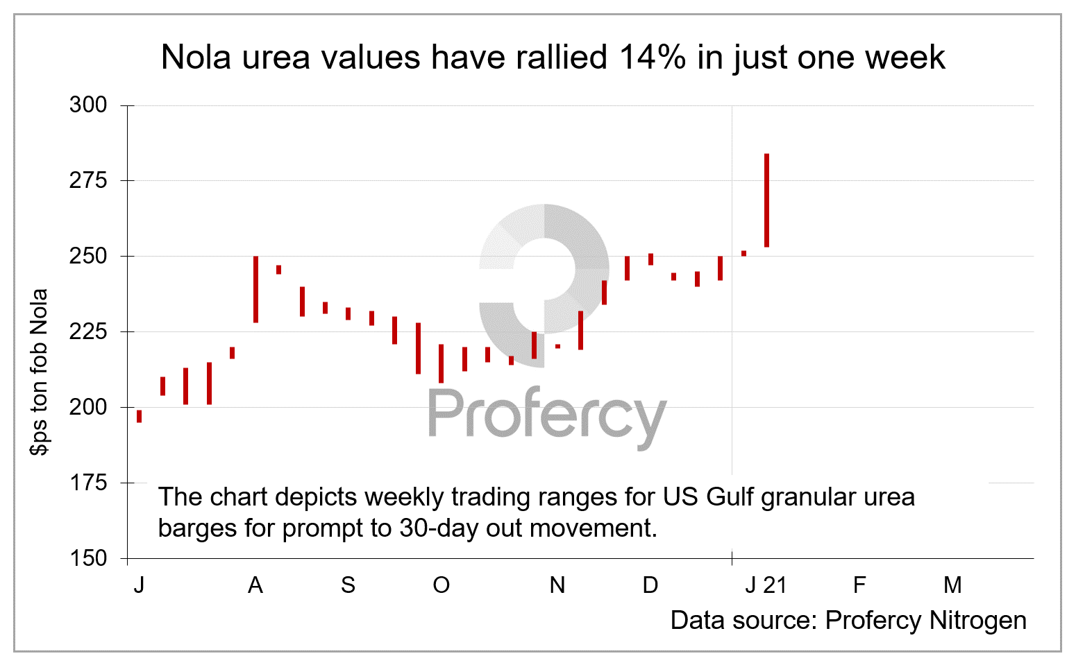 Trading activity in the US Nola urea barge market kicked into action during the first week back following the New Year break. The surge in demand has resulted in prompt month January values gaining around 14% since the start of the week.