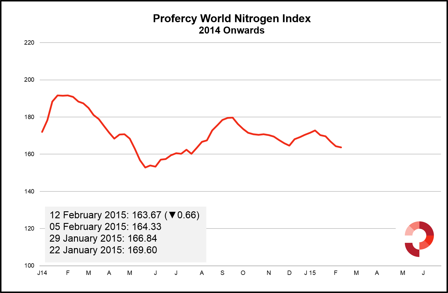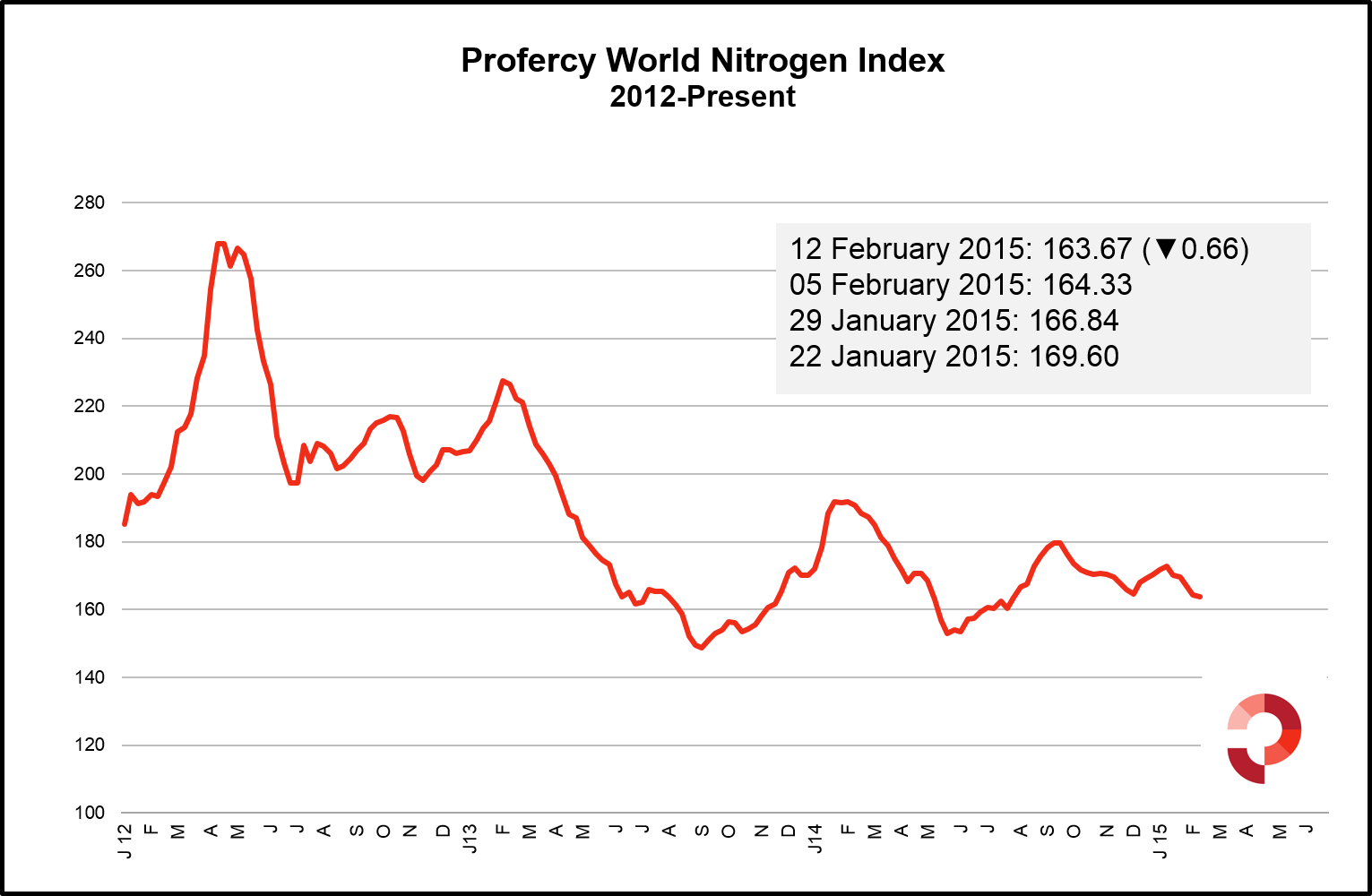 With no major gains for any nitrogen products, Profercy’s World Nitrogen Index fell 0.66 points this week and is currently at 163.67.