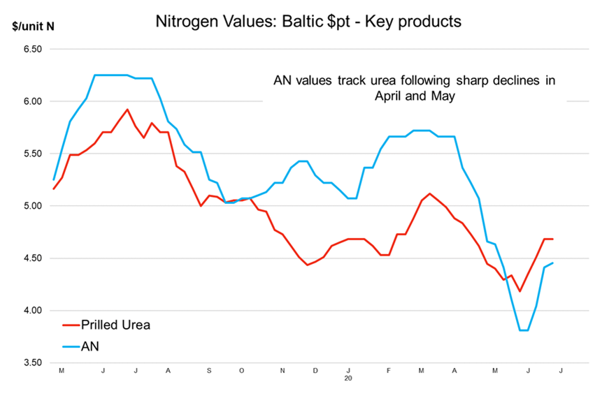 The rapid increase in AN values was due to a combination of factors. First, Baltic fob levels were down to around $130pt fob by late May and were at historic lows. Indeed, prices had declined around $65pt over two months. This fact did not go unnoticed in Central and South America where buyers stepped up to secure summer requirements earlier than they would have otherwise. This collective rush to buy opened up significant sales opportunities for Russian suppliers, including Eurochem and Uralchem.