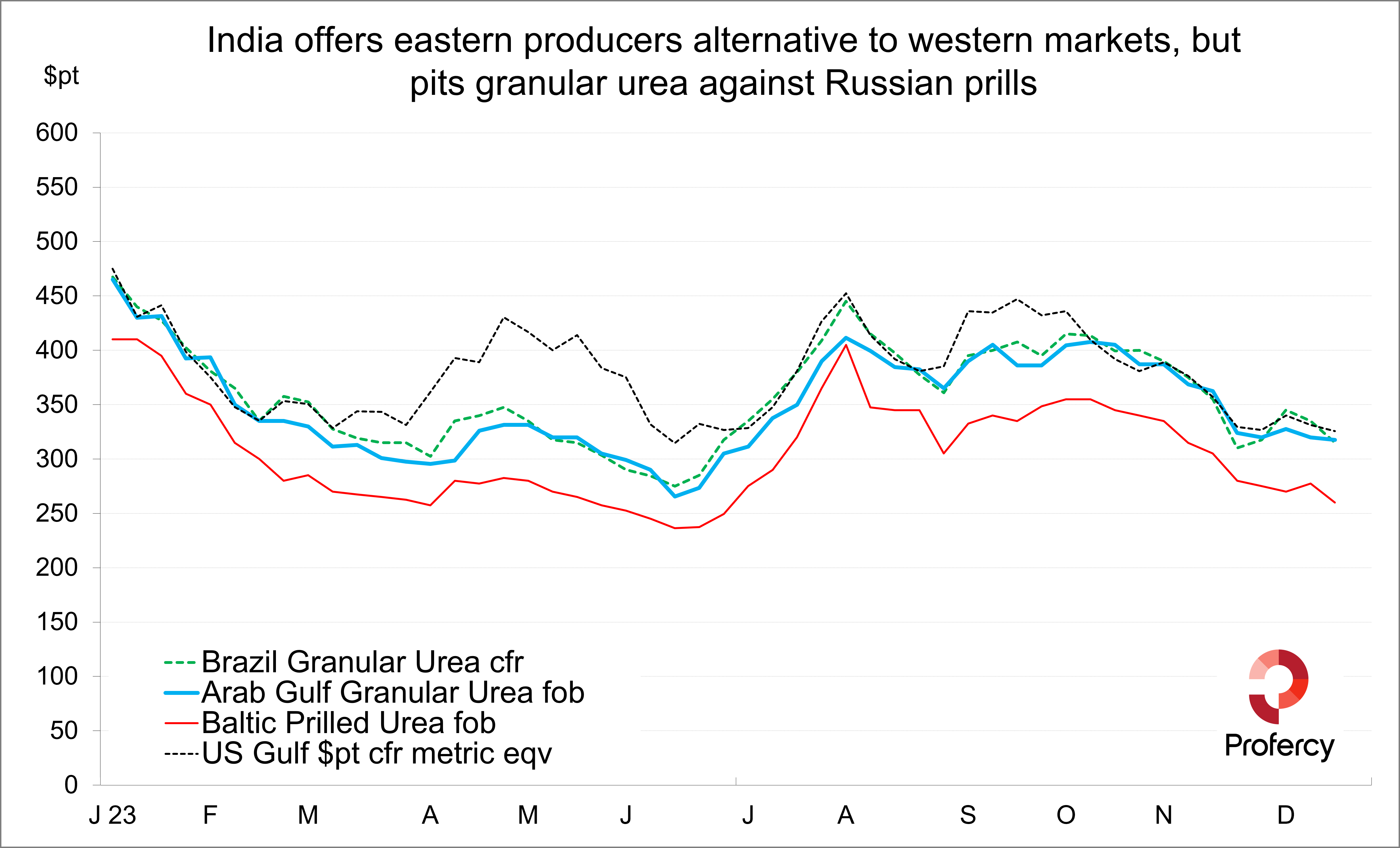 India is likely to define market values into January. The latest tender is set to see considerable producer interest, particularly from prilled urea producers in Russia, as well as Middle East and SE Asian suppliers. Egyptian prilled urea could also be offered. One positive for suppliers is that China is showing little export interest.