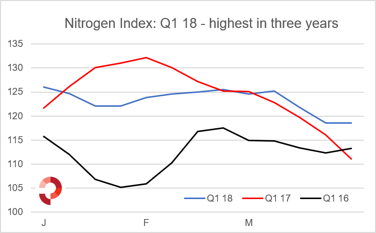 The first quarters of each of the last three years have seen lower prices with a 6-8-point decline on the Profercy World Nitrogen Index. 2018 was no exception.