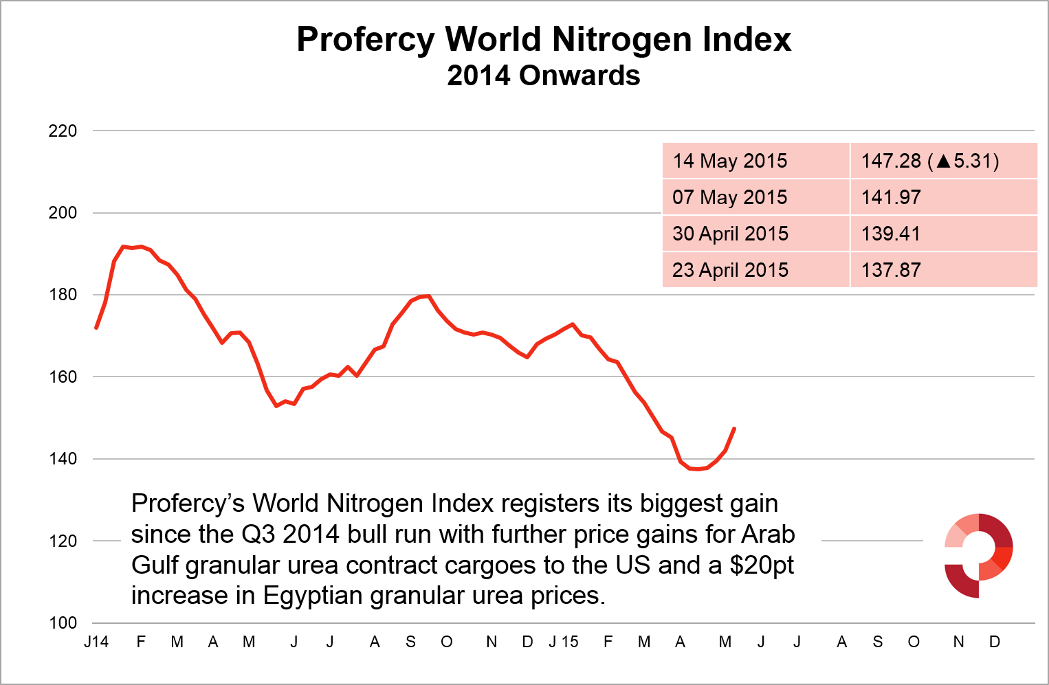 The market rebound continues with higher prices witnessed this week at all major export points and in all major markets worldwide. Profercy Nitrogen Report, 14 May 2015